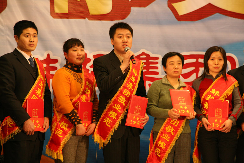 酒會(huì )上,公司表彰了2010年度6名創(chuàng )新標兵和32名敬業(yè)模范,公司領(lǐng)導分別為敬業(yè)模范頒發(fā)證書(shū)和獎金,張孝成副市長(cháng)為創(chuàng )新標兵頒發(fā)證書(shū)、獎金并致辭,肖超秘書(shū)長(cháng)、創(chuàng )新標兵及敬業(yè)模范抽出19名幸運的獲獎員工,為大家呈上了精神大餐和物質(zhì)大餐;著(zhù)名喜劇表演藝術(shù)家陳佩斯領(lǐng)銜主演的話(huà)劇《雷人晚餐》在蚌埠大劇院隆重上演,員工們在酒會(huì )上獻出精彩紛呈的歌舞表演,為集團員工及珠城人民奉上文化大餐。與會(huì )人員舉杯同飲,共慶農歷新年的到來(lái)。