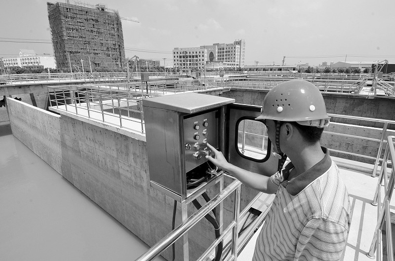 7月 18日,城南污水處理廠(chǎng)項目建設現場(chǎng),施工人員正在進(jìn)行設備巡查。據了解,該項 目 總 投 資9970萬(wàn)元,設計日污水處理能力2.5萬(wàn)噸,目前已具備通水試運行條件。