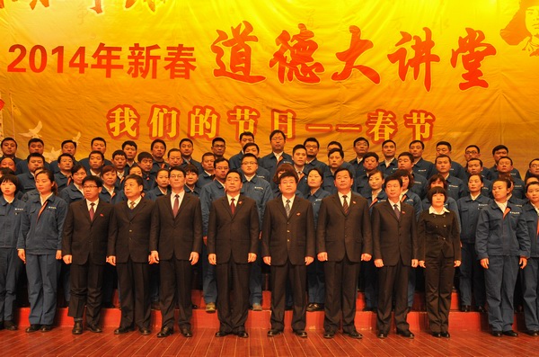 講堂上,首先由中環(huán)水務(wù)黨政班子成員和營(yíng)業(yè)所員工大合唱《公民道德歌》。隨后講故事環(huán)節播放了感動(dòng)中環(huán)水務(wù)的《天河應急水源建設紀實(shí)》短片。在誦經(jīng)典環(huán)節中,誠信公司的《歡歡喜喜過(guò)大年》為我們講述了孝道,“小孝孝其身、中孝孝其心、大孝孝其志,至孝孝其慧”,生動(dòng)的闡述、富有激情的表演獲得了在場(chǎng)陣陣掌聲。在學(xué)模范環(huán)節中,中國好人獲得者蚌埠公交集團的107路車(chē)駕駛員楊苗苗、三級警監、迎淮社區片警單修河到會(huì ),和與會(huì )人員暢談自己的內心感受,使大家體會(huì )到只有踏實(shí)肯干、愛(ài)崗敬業(yè)才能贏(yíng)得市民和社會(huì )的認可,才能實(shí)現自我價(jià)值。