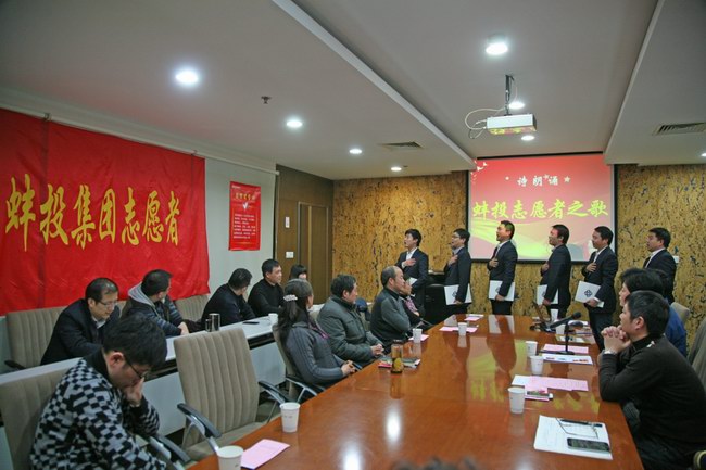 在談感悟環(huán)節,主持人介紹了近期公司志愿者注冊登記工作開(kāi)展情況,宣布成立蚌投集團志愿服務(wù)隊。在本環(huán)節中, 6名志愿者現場(chǎng)為大家帶來(lái)了詩(shī)歌朗誦——《蚌投志愿者之歌》并莊嚴宣誓。