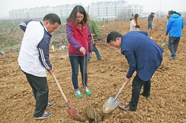 植樹(shù)現場(chǎng),大家分工協(xié)作,揮鍬、挖坑、扶苗、填土,各個(gè)環(huán)節銜接有序,呈現一片熱火朝天的景象。經(jīng)過(guò)兩個(gè)多小時(shí)的勞動(dòng),大家共栽下近兩百顆樹(shù)苗。大家希望種下的樹(shù)苗能夠茁壯成長(cháng),成為蚌埠的空氣凈化器和綠色的風(fēng)景線(xiàn)