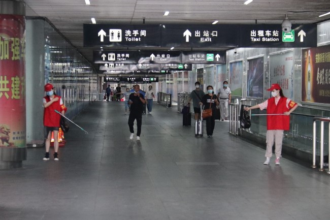 從落客平臺到公交車(chē)站再到中央廣場(chǎng),志愿者們辛苦撿拾每一個(gè)煙頭,耐心解答每一次問(wèn)詢(xún),勸阻亂扔垃圾、隨地吐痰等不文明行為,為創(chuàng )城工作做出了自己的貢獻。